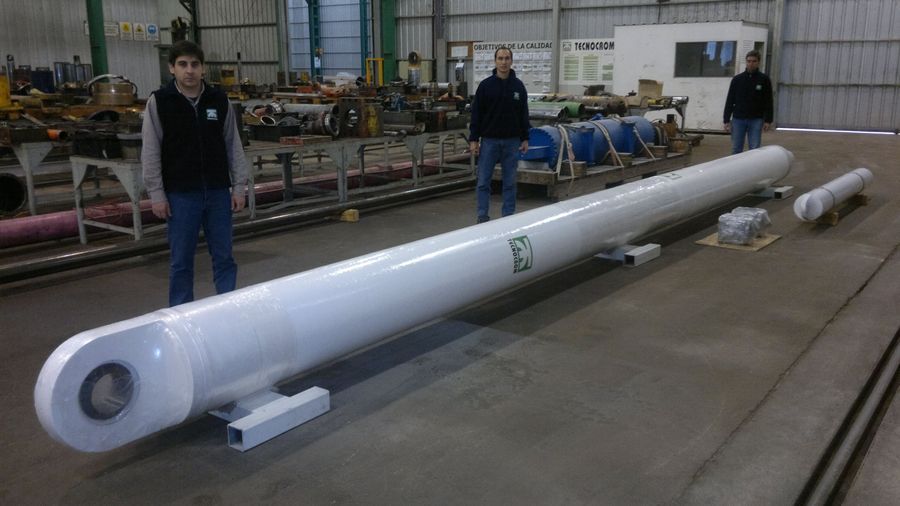 La compañía nacional YPF S.A. posee una empresa controlada de su propiedad, YPF Servicios de Perforaciones S.A. (YPF S.P.), para colaborar con la perforación de la gran cantidad de pozos que debe realizar en función a sus planes de negocios. Esto ya que las proveedoras locales no dan abasto con ese servicio. Para tal fin han comprado equipos DRILLMEC de Italia, los mismos son de última generación. Es para estos equipos que YPF S.P. nos contrató la reparación de los Cilindros Hidráulicos de izaje / movimiento de las diferentes partes componentes, entre otras la torre principal. Uno de ellos posee estas dimensiones principales; Ø de Camisa 390 mm, Ø de vástago 260 mm, y una carrera de 8.000 mm.